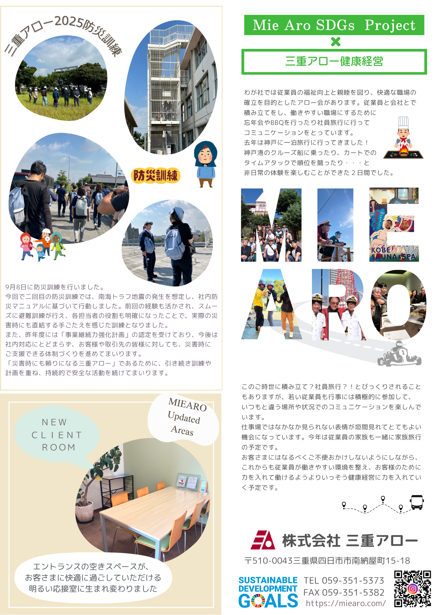 これは、三重アローの「三重」、当社の3つの事業部門、そしてお客様・わが社・地域社会の3つのつながりを表しています。